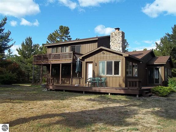 Extraordinary setting, 195 feet on Lake Huron tops this wooded 10 acre parcel. Looking for privacy? This will fill the bill. Beautiful walkway and boardwalk takes you to the Sandy shores of Lake Huron. Travel down a well maintained two track road and over a wooden bridge to reach your destination. Home has 2 master suites one up and one downstairs. Upper bedroom has access to a full deck with a fantastic view. Large living room with a stone wood burning fireplace and vaulted ceilings, sun room off the living room also surrounded by decking, Modern kitchen all appliances included, laundry room off the kitchen area, dining room surrounded with windows for a great outdoor view. Paved blacktop drive leads to a two car attached garage. Nice landscaped circular drive. Home has a alarm system. Priced below assessed value, Great Buy on this unique property for the unique family.