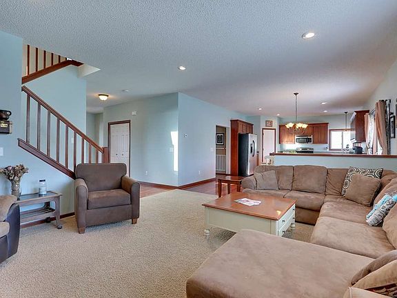 See virtual tour here;http://spacecrafting.com/nm01 Welcome home! You'll love this amazing, like new, two story home in Minnetrista's popular "Hunters Crest" development. This home has 3,500 plus square feet of finished living space, 5 bedrooms, 4 bathrooms, a finished and heated 3 car garage, a front porch, a large composite ("Azek") deck, all on a .342 acre lot with fenced-in back yard. As you walk in you'll immediately fall in love with the rich feel the hardwood flooring creates. On the main level there's a large foyer, a front sitting room, open layout for living room-dining-room-kitchen, a mud-room just off the interior garage door, and bathroom. The upper level has a large loft/common area, laundry room, four bedrooms, a full hallway bathroom. The large master suite with vaulted ceilings, a large walk-in bathroom with separate sinks, whirlpool Jacuzzi tub, and separate shower. The lower level offers a large family room with a state-of-the-art home theater (1cm projector, 120" screen, bluray player, 5.1 digital surround sound), and fireplace. The 5th bedroom shares the fireplace, and has an egress window. The luxury bathroom is brand new, and the office/workshop is great. Some other notable features include; tank-less water heater, water softener, heat pump, in-ground sprinkler system, and rainbow play set in back yard (included in sale price). There are two large parks in the neighborhood as well. "Linden Park," and "Hunters Crest Park." Directions: Hwy 7, 1.2 miles west of St Boni, to Hunters Trail, South to Landings Way