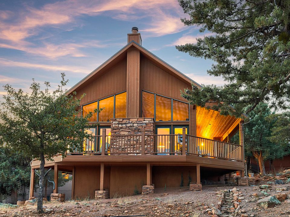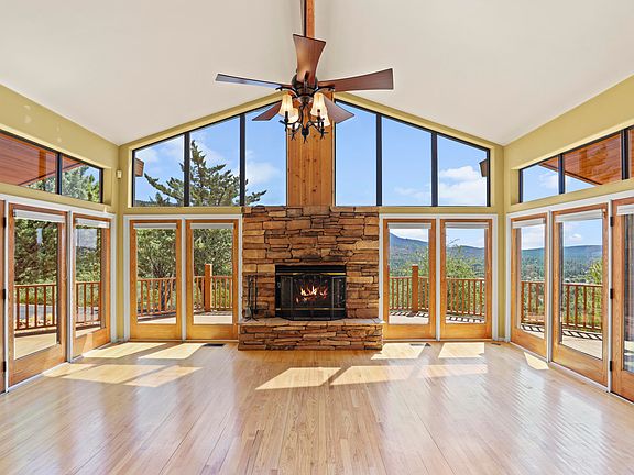 Located in Portal IV a well desired gated community in Pine, Arizona. Offering outstanding and unobstructed mountain views along with views of the quaint town of Pine. All living is on a single level with 3 bedrooms and 2 baths. The primary suite has access to the covered deck for those that enjoy the morning sunrise. One of the guest bedrooms also has access to their own private deck. The kitchen area is perfect for the cook and great conversation around the center island or kitchen table. The stunning great room is perfect for the evening sunset or those snowy days with the stack stone wood burning fireplace surrounded by the wall of windows accented by the soaring vaulted ceilings with exposed wood beams. This is the perfect home for entertaining inside or out. There is plenty of outdoor living on the large spacious covered and open deck area to view the wildlife or the evening sky. There is a stairway that leads you down to the 2 car garage and plenty of storage. If you are looking to getaway in the Pines or live in a wonderful area that offers plenty of outdoor adventures don't miss out.