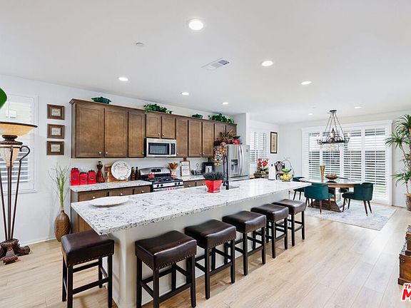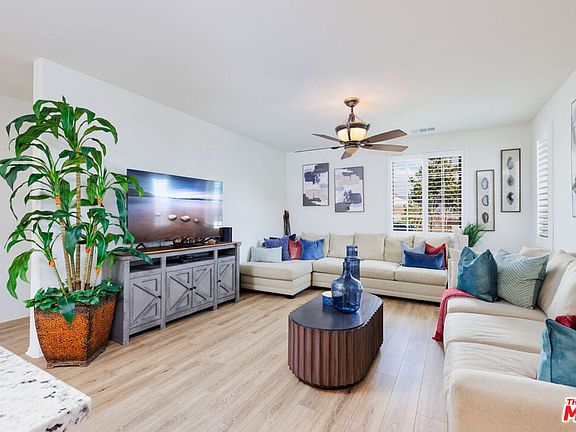 Turnkey 4bed/3bath home located in the Sierra Crest Community, This a Must See! NO HOA FEES! Built in 2021 by K Hovnanian Homes. Situated on a Premium Lot. Shows like a Model Home. The First-floor Open floor plan features Luxury Vinyl Plank Flooring, Plenty of Natural Light, Dual Pane Windows with Custom Plantation Shutters. The Kitchen features a Large Island with Beautiful Granite Counter Tops, Stainless Steel Appliances, Wooden Cabinets, Spacious Pantry, Recessed Lighting, First Floor Bedroom with Separate Bathroom perfect for Guests or Multigenerational Living. On the second floor you'll find the Spacious Primary Bedroom Ensuite with Spectacular Mountain Views, Separate Tub and Shower, Dual Sink Vanities, Enclosed Water Closet and Large Walk-In Closet. Enjoy the Spacious Loft Area perfect for multi uses (family room, game room, theater room, office, playroom, etc.), Two additional Bedrooms and Bath, Dedicated Laundry Room with built in storage, Dual Pane Windows with Custom Plantation Shutters throughout. Low Maintenance Backyard Yard complete with Custom Concrete Slabs, Artificial Turf, Aluminum Patio Cover with Recessed Lighting, electrical outlets and built in light fixtures. Side yard with Serene Rock Fountain, perfect for outdoor entertaining. 12 Panel Leased Solar System, Two Car Garage with Direct Access equipped with Custom Overhead Storage. Within close proximity to Sierra Crest Community Park, equipped with Kids Playground Area, Basketball Courts, Dog Park, Walking Trail and more. Close proximity to Local Neighborhood Shopping Centers, Grocery, Restaurants, 210 and 15 Freeways and a short drive to Victoria Gardens Outdoor Mall.