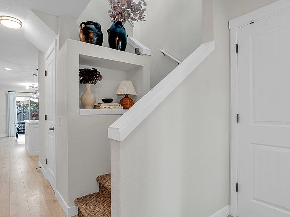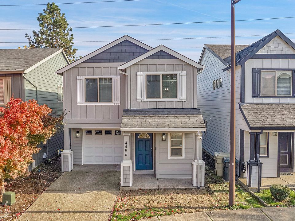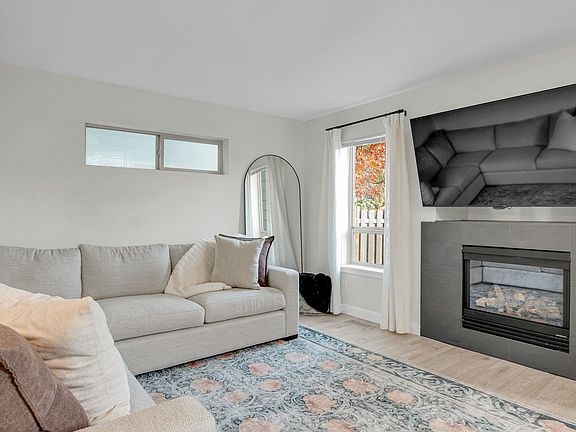 Welcome to this stylish 3-bedroom home in Beaverton, offering a perfect blend of modern finishes and comfortable living. As you step inside, you're greeted by an open, airy layout with sleek laminate flooring throughout the main level. The spacious open living room features a striking contemporary fireplace, creating a cozy atmosphere. The kitchen is a true highlight, featuring pristine quartz countertops, ample cabinet space, custom tile backsplash, and stainless-steel appliances. It’s an ideal space for cooking and entertaining, with a seamless layout that opens to the dining area. Upstairs, you'll find all three bedrooms and a bonus loft area, each with plush carpeting for added comfort. The large master suite offers a peaceful retreat, remodeled with chic finishes and quartz counters with a double sink vanity, walk-in shower, and walk-in closet. The two additional bedrooms provide plenty of space for family or guests. A bonus family room upstairs gives you even more flexibility—whether as a play area, home office, or entertainment space. Conveniently located upstairs, the laundry room adds to the home's functionality, making chores a breeze. Step outside through sliding doors to your private backyard, backing to greenspace is complete with a grassy lawn and a patio area—perfect for outdoor gatherings or simply relaxing in the fresh air. With an attached one-car garage for extra storage and parking, this home offers everything you need for easy living in a prime Beaverton location. No HOA!