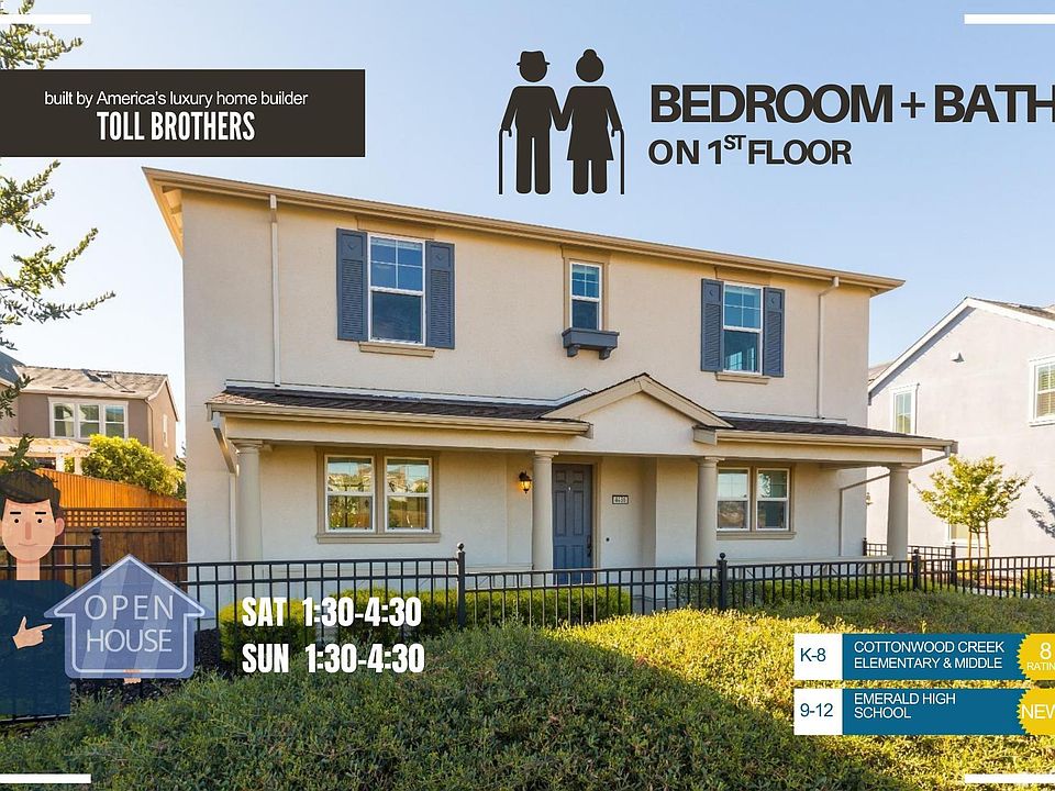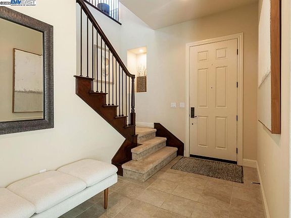 Nestled along the greenbelt side of the community, 4456 Sunset View overlooks a protected green space, ensuring both privacy and stunning sunsets. Built in 2015 by the esteemed luxury builder Toll Brothers, this home features an expansive sliding glass door wall that seamlessly connects indoor and outdoor living spaces. The main floor includes a full bedroom and bathroom, making it ideal for guests or personal use. On the second floor, you'll discover three inviting bedrooms and a versatile bonus room, ready to inspire your creativity as an office, home theater, fitness space, or even a fifth bedroom tailored to your dreams. Recent upgrades include engineered wood flooring, master bedroom closet systems, and landscaping for both the backyard and front porch, along with a fresh coat of paint throughout the house. Its tranquil yet convenient location offers privacy while being just minutes away from the 580 freeway, shops, and restaurants. This house is a true testament to refined living.