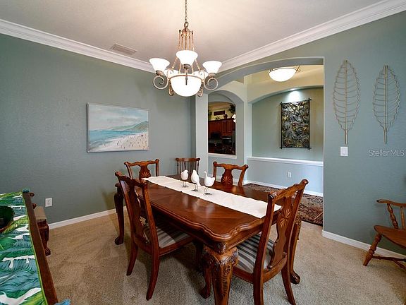 - Interior Features: Ceiling Fans(s), High Ceiling(s), Master Bedroom Downstairs, Vaulted Ceiling(s), Crown Molding, Walk-In Closet(s), Window Treatments, Open Floorplan, Solid Surface Counters, Eating Space In Kitchen