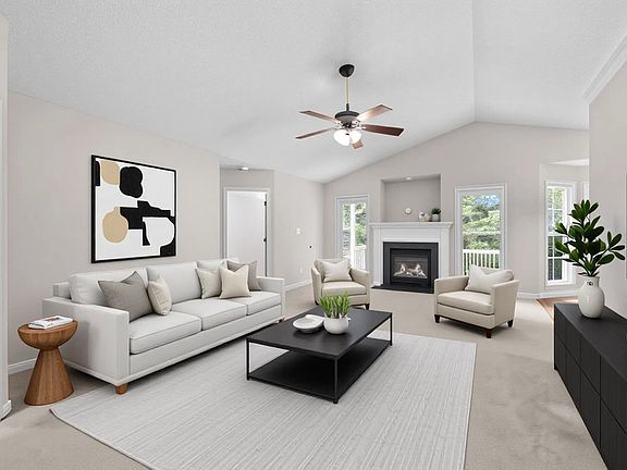 This charming ranch offers the perfect balance of comfort, character, and convenience. Nestled on a peaceful, tree-lined lot, this home features a spacious great room with soaring cathedral ceilings and a cozy gas log fireplace—an ideal space for relaxing or entertaining. You'll love the bright and airy dining area with bay windows overlooking the private, wooded backyard. Behind the trees, there's a serene farm view—no homes in sight, just nature and privacy. Step out onto the secluded back deck and enjoy your morning coffee in peace. The kitchen and breakfast area feature easy-to-maintain laminate floors, a custom bar, and plenty of natural light. A recent update includes fresh neutral paint throughout, making this home truly move-in ready. A unique highlight? A mature Redhaven peach tree in the front yard—planted by the current owner over a decade ago—offers delicious summer fruit and a sweet touch of homegrown charm. Located in a USDA-eligible area and close to major highways, this property combines country tranquility with city convenience. Don't miss your chance to call this special home yours!