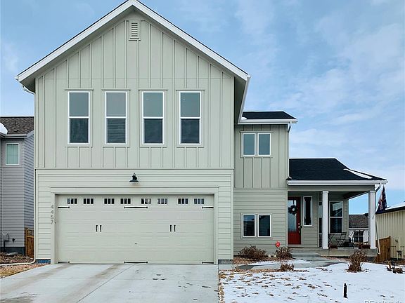 Welcome home! This modern farmhouse boasts stunning vaulted ceilings and is filled with tons of natural sunlight! The main level displays an open concept, spanning the living room, dining room and luxurious kitchen which features high-end dark maple cabinets, quartz countertops, beautiful tile backsplash, a large center island with bar seating and stainless steel appliances including a gas range and hood. Continuing past the kitchen you will find a large walk-in pantry, powder room and laundry room/mudroom connecting to the oversized 2 car garage. The second level offers two bedrooms sharing a jack and jill bathroom and a spacious master suite complete with a large walk-in closet and a grand bathroom featuring a walk-in tile shower and double sinks. Downstairs you will find a large unfinished basement with 9' ceilings, rough-in and ready for your finishing touches. You won't miss the custom built-ins in the master closet or desk and shelves in the mud room. Your high end window coverings give privacy, yet allow the natural light to shine through. The back yard has been fully fenced and landscaped for your entertaining needs. Enjoy your brand new community club house and fitness center. The Venture Center includes two new outdoor swimming pools. Nearby community dog park. Coming soon - Spree park, located in the community, will include a separate club house, with meeting space and a fully functional kitchen. Community activities will be available once the club house is completed which is scheduled for this fall. The $180 quarterly HOA fees include a clubhouse, pool, fitness center, park, playground, recycling, and trash removal! Don't miss this opportunity to own in Brighton Crossings close to shops and restaurants with easy access to DIA!