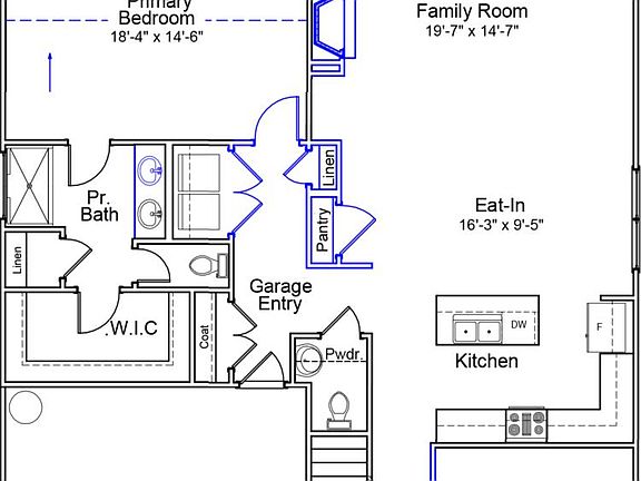 The Pickens is a two-story home that comes with four bedrooms and two-and-one-half bathrooms. A home office is located just inside the front door. An open kitchen, eating area, and family room overlooking a covered back porch. The primary bedroom, which has a vaulted ceiling, leads to the primary bathroom and a generous walk-in closet. Each bedroom upstairs also has a walk-in closet, and they share another full bathroom. In addition, the second floor contains a loft space perfect for an additional lounge area upstairs. Additional upgrades include white shaker cabinets in the kitchen and all bathrooms, luxury vinyl plank flooring in the main living area downstairs, and a covered back porch.