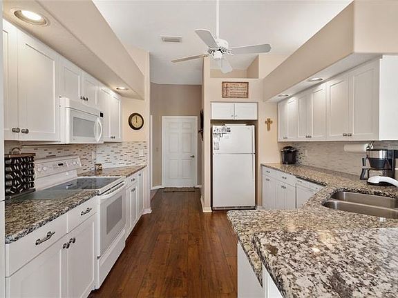 This is a completely updated home featuring granite counters, hardwood laminate, impact windows throughout and a closed in bonus room overlooking the golf course and water. Everything in the home is in perfect condition and will feel like a model. The covered lanai has been remodeled with impact glass sliding windows and air conditioning. The square footage is not listed as part of the heated of the home. The extended garage leaves plenty of room for a workbench and two cars. The roof and HVAC were replaced in 2014. Everybody would be proud to call this home theirs. Golf course and recreational facilities are included in the HOA fees. There is an additional $450.00 dollars which is for the food minimum. At closing there is a one time $1100.00 Capital Reserve Fee with a $300.00 administration fee.
