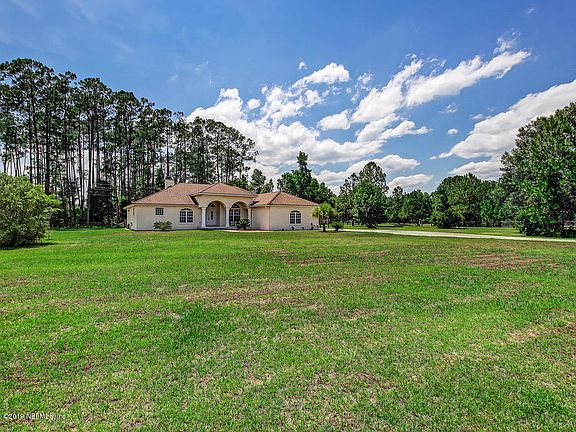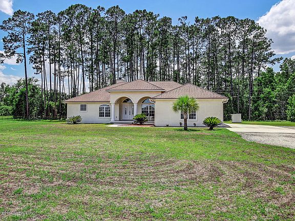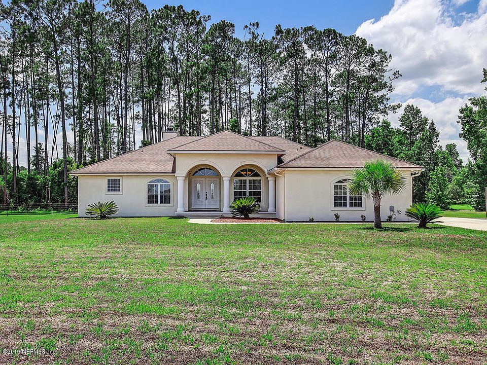 Live in the country in this beautiful custom built block stucco home on 2 acres. This home has 3 beds/2 baths with an office. 12 foot ceilings in living and dining room. Crown molding throughout. Wood fireplace. Lots of windows to let natural light in. Kitchen with custom cabinetry and spacious counter space. Breakfast area. Nice sized master suite with double tray 10 foot ceilings, transom window and a door leading out to patio. Master bath with garden tub, double vanity sinks, separate tiled shower and walk-in closet. Split bedroom design with 2 bedrooms on the opposite side. Second bath with tub/shower combo. Open patio with wood decking perfect for grilling and entertaining. Roof has 30-year architectural shingles. Close to Town of Callahan. Short drive to Yulee and Jacksonville.