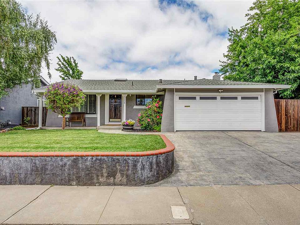 Home is where you hang your heart. Stunning single story home with lots of upgrades. Beautiful granite kitchen with custom cabinetry, recessed lighting, stainless steel appliances and tile floors. Step down family room with white washed fireplace, wood flooring and oversized sliding glass door to backyard. Living room with beautiful double doors and plantation shutters. Master bedroom with mirror closet doors and beautifully remodeled master bathroom. White cabinetry, Corian counters, tile floors and custom tile shower. Remodeled hall bathroom with large vanity, granite counters and spacious tile shower. New composition roof done in 2018. Two car garage. Gorgeous backyard with large patio, lush lawn, BBQ with arbor, play area, planting box and storage shed. Beautiful stamped concrete driveway and walkway. Award winning Pleasanton Schools.