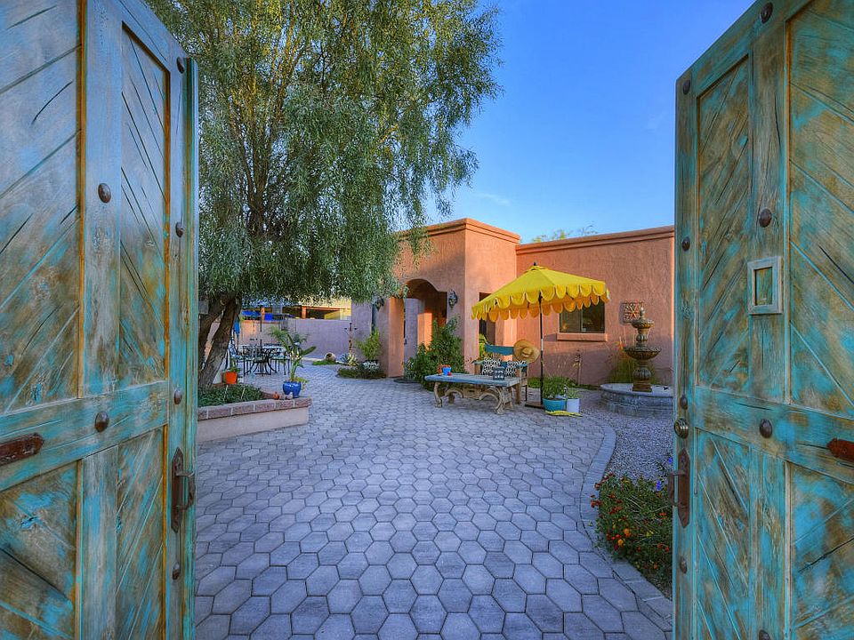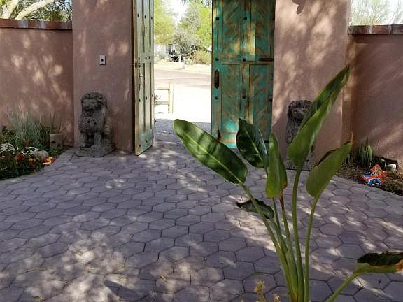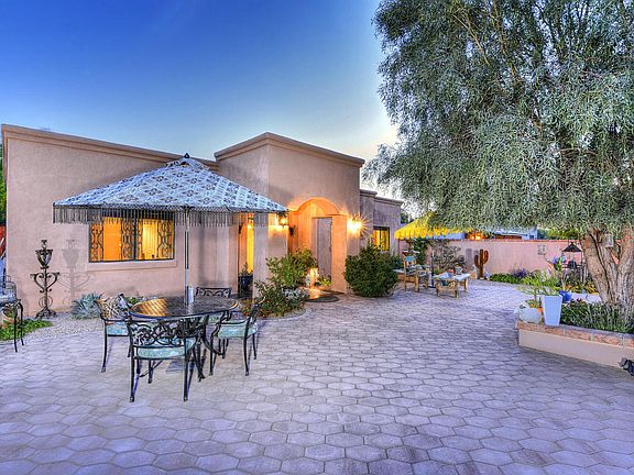 Impeccably remodeled 3BR/ 2BA contemporary home. Incredible open/ split 2,179 SF floor plan. Stunning granite in kitchen with glass tile, SS appliances, chrome range hood w/ pot filler and over-sized island, perfect for entertaining. Master suite features coffered lit ceilings and custom cherry walk-in closet. Extras include recessed lighting, fans throughout, and heated floors in Master Bath. Extra large courtyard in front boasts pavers throughout, water feature, and custom designed front gate. Large backyard with covered, tiled, patio, and plenty of room for your ideas. Electronic gate provides security and privacy. Excellent central location. Live the ultimate desert lifestyle. Call today.