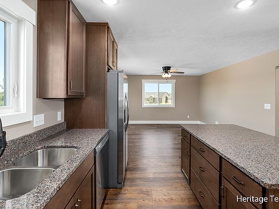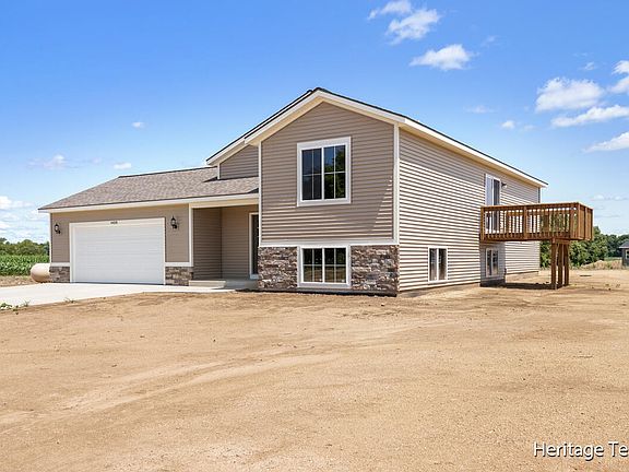 Newly constructed bi-level home on 1.65 acres, foyer with large closet, open plan living room, dining area with slider to deck and kitchen with island, granite countertops, tall cabinets and soft-close drawers, stainless appliances and nearby pantry closet. Split plan primary suite with large walk-in closet and full bathroom, additional bedroom and full bathroom on the main floor. Lower day-light level with third finished bedroom with walk-in closet, unfinished space for family room, future bedrooms, laundry room, storage and utilities, plumbed for a bathroom. Two-stall attached garage. Yard finished to final grade. No seeding or landscaping.