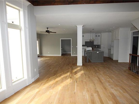 Beautiful 1.5 Story built by Carson Custom Homes! Located on an outstanding lot backing to wooded greenspace with views of the Missouri River valley! Fantastic kitchen w/ huge center island, granite counters, hrwd floors & walk-in pantry. Hearth room features custom fireplace. Formal dining! Master suite designed w/ vaulted ceiling and private bath: Covered deck. Office off kitchen! Large bedrooms w/ walk-in closets throughout. Terrific neighborhood amenities! Photos may be stock photos of the plan.