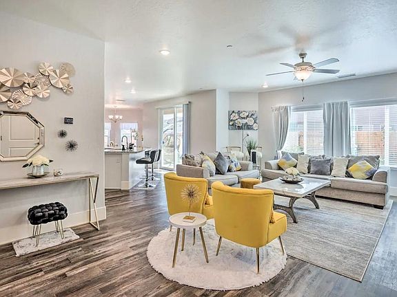 2-story, beautiful newly built fully furnished house with a security camera, and high-speed Internet, all 4 rooms have a smart TV and the living room has an 86-inch TV. Digital smart controlled AC/heater, advanced smart Samsung Refrigerator with touchscreen TV, advanced smart Washer/Dryer, and gated community. Close to Walmart and Costco. Renter pays for water, gas, electricity, and internet. Rental payment due at the signing date. No smoking inside the house. Up to small pets permitted.