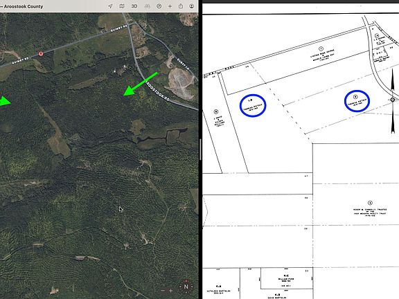 385 mostly wooded acres with ~1 mile of surveyed road frontage on Rt. 11 (Aroostook Road) and 100ft of reserved access of Quimby Road. Two large, commercial-bay garages: 1) 30x70 insulated & heated w/finished space above 2) 40x50 metal glad w/steel beams and double bays. Extensive inclusions list available by request. Well & septic installed, design available. Doublewide mobile on premises has been damaged, unknown if repairable or livable, no value being attributed, likely needs to be removed.