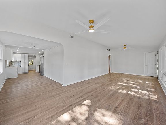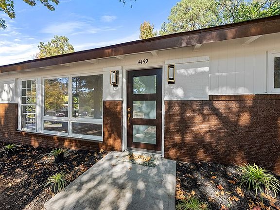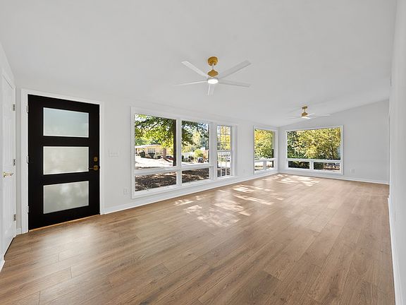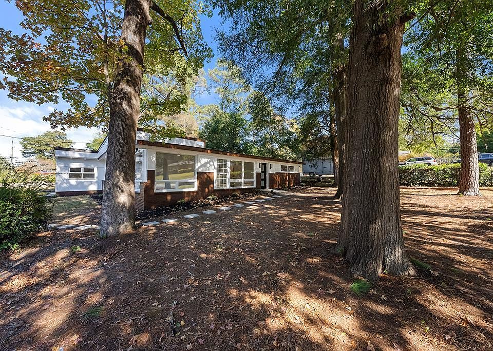 This fully renovated home lives like a brand-new build, featuring all new light fixtures, switches, flooring, and designer finishes throughout. Professionally designed by Tier Studios, it highlights the home's original, dramatic architectural lines and delivers a one-of-a-kind mid-century modern feel. The layout offers ideal separation: two bedrooms and a full bath on one side, a striking brass-and-granite kitchen at the center, and three bedrooms with two full baths on the other. Panoramic floor-to-ceiling windows overlook a serene, private landscape, filling the space with natural light. The multiple private bedrooms with spacious common living areas offer excellent income potential for savvy investors. This home easily accommodates remote work and independent living arrangements. Schedule your tour of this unique, must-see home today!