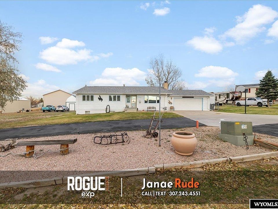 RURAL property within minutes from town, located on over 1/2 acre, with city water & sewer. Featuring 4 bedrooms(one non conforming) 2 car heated garage with additional work space area, beautiful patio with Pergola Gazebo, plus plenty of room for all your toys. Listing presented by Janae Rude, Call or text Rogue Agents with exp Realty at 307-243-4551 for your private tour today!