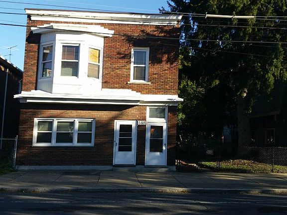The great brick two family has load of space, first floor was once a shop. The first floor has 2 large area for storage, these spaces could be additional bedrooms or family room. Second floor has 4 bedrooms plus enclosed porch area. Hardwood floors throughout and original woodwork. Great location, close to services and bus route. Off street parking , fenced yard , flower beds, out door seating and grape arbor. Tremendous potential, well built and full dry basement. PROPERTY SOLD AS IS, some lights exc.
