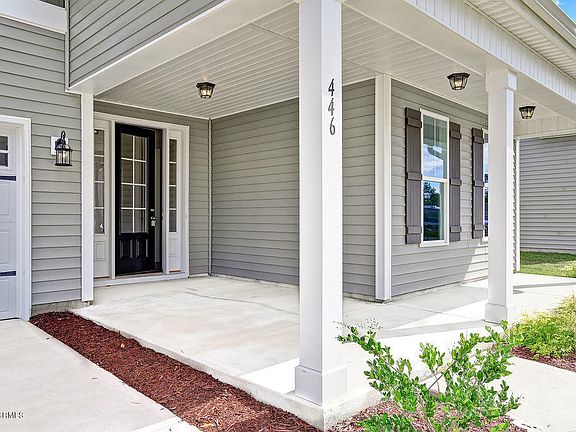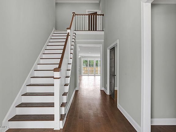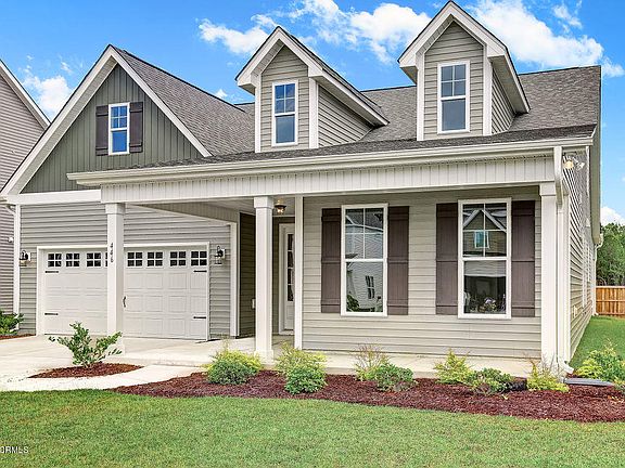 The Forest Floorplan is an open floorplan with engineered hardwoods throughout living areas. Downstairs includes master suite with trey ceiling, dual vanities in bath, fully tiled shower, very large walk-in closet with wood shelving, kitchen with large island, quartzite counters, PGT sliders, living room with gas fireplace including built-in shelves leading out to enormous covered rear porch, study w/glass doors, and 2nd bedroom w/2nd bath. Upstairs has 2 more bedrooms and bath. There is also a large walk-in unfinished storage room. Home offers plenty of space, with large covered rocking chair front porch, irrigation in front, sodded front and side yards, mud room with built-in bench, builder warranty, and much more.