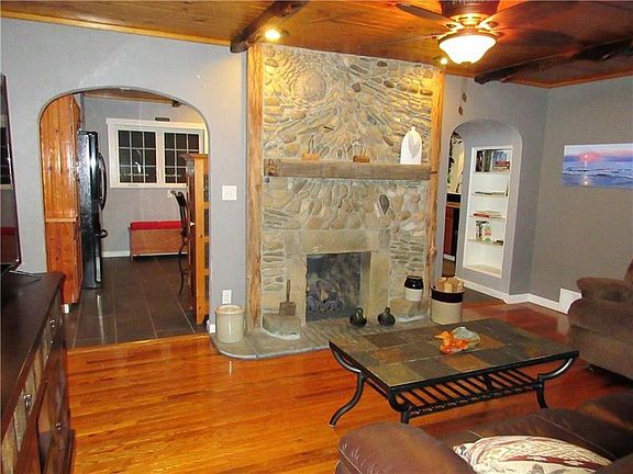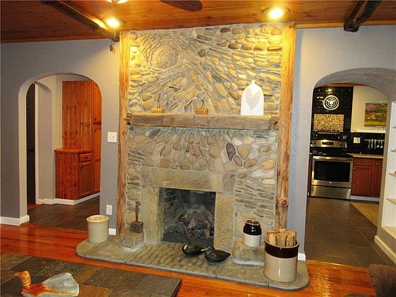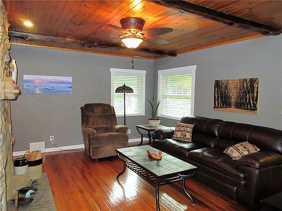 If you're looking for country living, but want a convenient location, this completely updated ranch on 18.8 acres, is for you! Its charm & character will wow you! The living room & kitchen are adorned with beadboard ceilings with honed hemlock beams. Hardwood floors and a stone gas fireplace with recessed lighting add to the charm of the living room. The kitchen boasts a skylight, ceramic tile floors & backsplash, an island, recessed lighting & a double sink overlooking the side yard, fenced in garden, grape arbor & chicken coop. The 39x9' covered patio with stone pizza hearth, the 12x10' & 14x12' two tier deck on the front of the home, & the outside recessed lighting will add to your outdoor enjoyment. There's a 24x22' carport with cement floor & walkway to the house, plus a 16x12' shed & 23x17' barn leading to the trails on the property. All of the buildings have a metal roof. You'll find lots of room on this property to play, hunt, hike, ride quads, or relax & watch the wildlife!