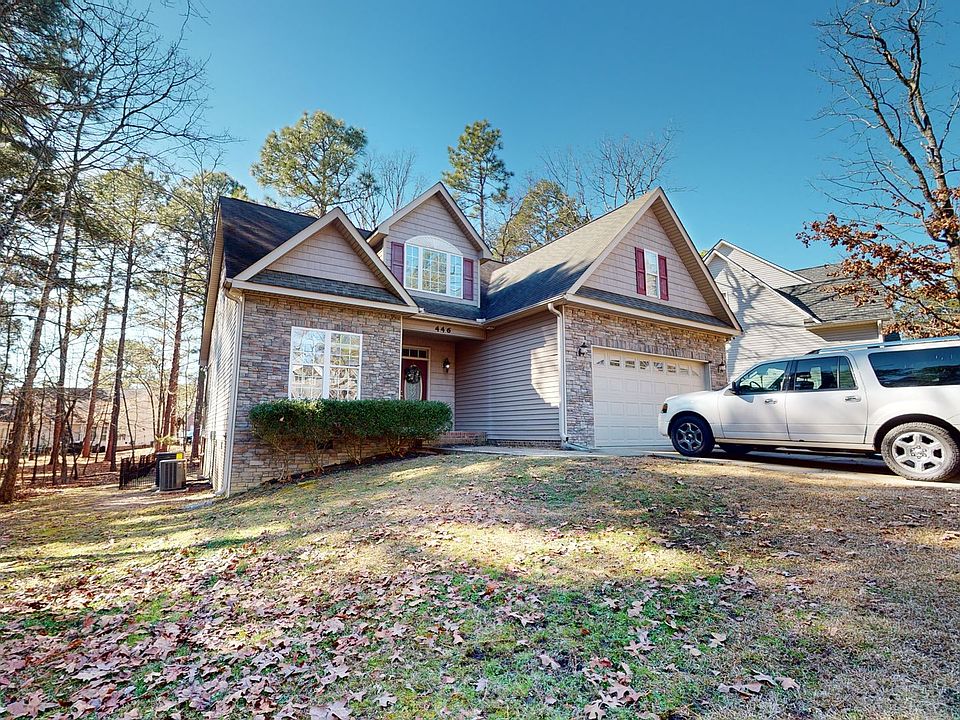 Spacious 4 bedroom, 2.5 bathroom home in gated community. The master bedroom is located on the first floor. Foyer & great room with hardwoods. Granite counter tops & stainless steel appliances in kitchen. Screened back porch. Walk-in-closets. Master bathroom includes jetted tub & separate shower. Cozy gas log fireplace in great room. Enjoy all the Amenities of Carolina Lakes: Par 70 Golf Course, Gated Community, 7 Private Lakes w/ a Marina and boat slips, Launch Ramp, Covered Pavilion, Club House, Olympic Sized Pool, Tennis Courts, Basketball Court, Fitness Trail, Community Ball Field. Market rent price includes mandatory $20 / month HVAC filter delivery program. Applications processed on first come, first serve basis. Qualifying criteria is as follows: - Overall credit report reflects positive bill payment history. - Monthly gross household income must be at least 3X the monthly rent amount. - No current or prior evictions within 3 years. - No money owed to current or past landlords. - Positive (verifiable) rental references preferred.