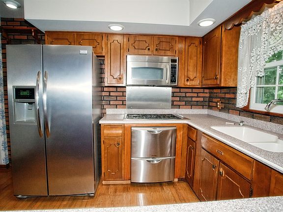 HUGE PRICE IMPROVEMENT NATURE LOVER'S PRIVATE PARADISE A must see Raised ranch with beautiful views and a walk out lower level to 2.95 acres of fenced-in property that includes a spacious multi use barn with loft; perfect for the hobby farm, crafts, or workshop. Home has 4 bd 1 3/4 bath and a cozy living room with wood burning fireplace and new carpet throughout. Kitchen has stainless appliances, Corian countertops, Jenn-air grill, double dishwasher, skylight and a screened in porch off the dining room that is perfect for morning coffee. Main floor laundry. Relax in the hot tub and view the stars through the vaulted ceiling skylights in the sunroom. All 3 main bedrms offer original hardwood flooring, and lrg closets. The huge family room in the lower level has new carpet and offers many possibilities as well as a 4th Bedroom, 3/4 bath, workshop and storage room. The property has an in-ground pool with a deck that needs TLC.