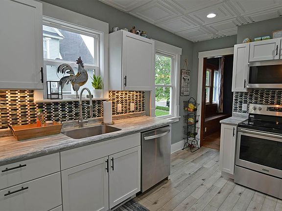Nothing says Welcome Home quite as well as a Classic American Foursquare and this 3-4BR/1.5BA is no exception. Beautiful original woodwork & warm hardwood flooring. Newly updated kitchen with all of the features you're looking for including new appliances, cabinetry, lighting & more. Enjoy meals in the large dining room complete w/its original built-in buffet/China cabinet. Inviting living room w/an energy efficient electric fireplace. Convenient laundry right where you need it...near the bedrooms! Update baths, plumbing, driveway & MORE. Full basement & walk-up attic offer excellent storage. Super fun-fenced backyard for gardens, games & gatherings. Relaxing enclosed front porch. Call to see this one!