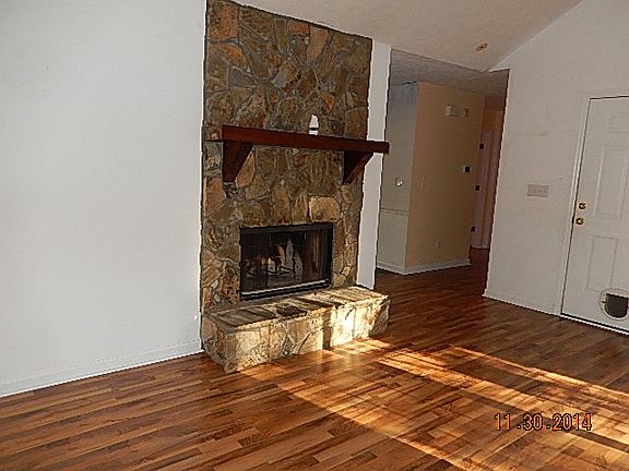Brick and vinyl home on 0.53 acres with lots of shady hardwood trees. Home is a single story with double car garage. Laminate flooring in main living area with a split bedroom plan. The kitchen features an eat in area. Rear yard is level with wood privacy fence. Wood burning fireplace in great room.