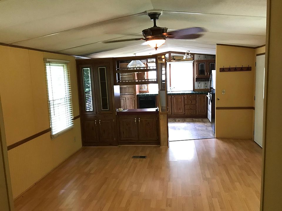 Available June 7, is this exceptionally nice singlewide home situated in a quiet, beautiful setting. Recent new flooring, light fixtures and fresh paint. To large bedrooms and two full baths. Lots of windows throughout the home and two decks at the back of the home. Very quiet area just one mile from Rt. 221 in the Copper Hill section of Floyd county. Approximately twenty minutes to downtown Floyd and about 19 miles to Roanoke / Cave Spring area. Master bedroom has a large en-suite bath with full vanity, a garden tub, shower and lots of built in storage. Second bedroom has an adjacent full bath. New double-insulted sliding patio door to the back deck off the kitchen. Nice spacious living room with wood laminate flooring, lots of windows and a remote controlled ceiling fan. Large eat-in kitchen with lots of counter and cabinet space and sliding glass doors leading to a private deck that overlooks woods and a small stream. Glass-top stove and full size fridge are included. The home has a fairly new, high-efficiency heat pump which provides efficient heating and cooling. This is a total electric home with AEP service (best electric rates in the area). The home has a painted-metal roof which improves insulation efficiency and makes for a quiet interior. The appliances included with the home include a fridge, electric stove, dishwasher and washer / dryer. The utilities included with the home are water and septic. There is a lockable storage area under the home. Tenants are responsible for mowing the lawn and any required snow removal. This is a non-smoking home with small (25 lbs or less) indoor pets considered on a case-by-case basis. Excellent rental references and security deposit required. $625 / month.