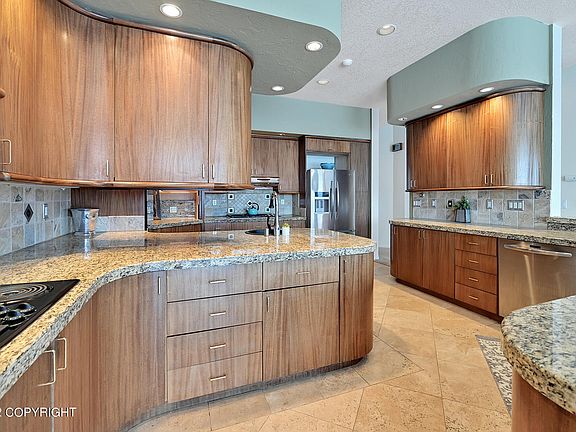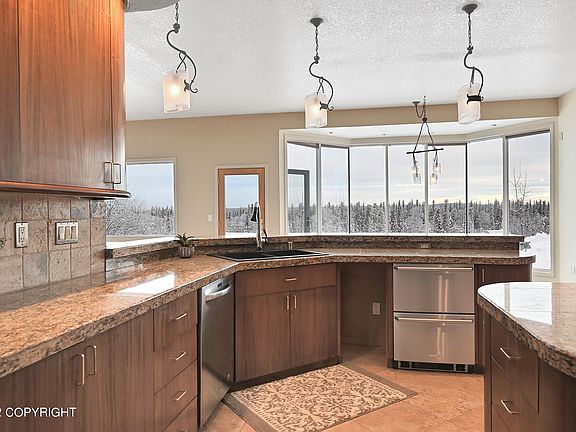 KENAI RIVERFRONT MANOR on 1.2 acres! A rare gem in Soldotna for elegant entertaining or B&B. UPDATES: NEW ROOF, ext paint,carpet +baths but priced for you to customize. 7344 sf,6 bedrooms,3 offices,4 full baths +2 half baths. FABULOUS CHEF'S KITCHEN w/granite +exotic wood cabinets. 3 car garage,paved circle drive & HUGE Trex deck. NEW metal stairs to viewing deck & fishing platform. HOME WARRANTY