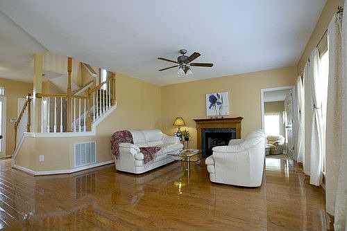 Fabulous views! Very rare backyard view. Home backs up to 10+ acre common area framed by mature tree line. Granite countertops, hardwood floors, invisible fence, 38x22 concrete patio + large deck. New roof & new downstairs HVAC 2007. New upstairs HVAC 2015. New Carpet and paint throughout house.