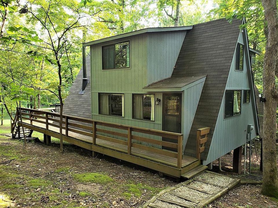 Relax and rejuvenate in this charming A-frame chalet on Foxfire Lake in the Innsbrook Lake Resort Community! Perfect for a romantic getaway or a fun gathering, this chalet offers serene lake views from the rocking chairs on the deck. Kickstart an adventure with the paddle boat or kayak, or enjoy peaceful fishing on the lake. The chalet features three cozy bedroom areas and two bathrooms, along with a full kitchen and large scenic views. Indulge in the vibrant community amenities including a clubhouse, golf course, horse stables, outdoor amphitheater, tennis courts, a swimming pool complex, and access to 100 lakes. With year-round events organized by Innsbrook, there's always something exciting to do. Experience the best of lake living in this delightful chalet! Agent Owned.