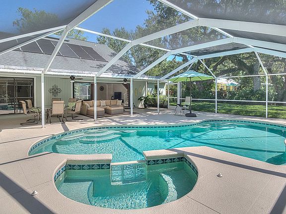 Move in Ready! Airy Central Beach Home features hardwood floors, foyer, crown moulding, fresh professional paint in/out, large open rooms, vaulted ceilings, eat in granite/stainless steel kitchen w/island, plenty of storage/walk in closets, laundry room, enclosed gas/solar heated pool/hot tub, outdoor shower, gas line for BBQ, 2 sheds - 1 with electric - and large yard near school/parks.