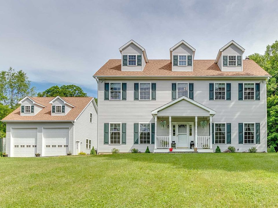 SPECTACULAR VALUE: This charming 4 Bedroom, 2.5 Bath Colonial is sitting pretty on 1.8 lovingly manicured acres. The 2,464 square foot main home features Crown Moldings, Hard Wood Floors, Carpeting, Central Vacuum, insulated windows, whole house fan and ceiling fans. 4 Bedrooms on the second floor with master bath suite, Jacuzzi Tub, walk in closet and shower. The construction consists of STEEL BEAM supports in both buildings, inside oil tank, NEW water storage tank, 200-amp electrical service and 3-zone baseboard hot water heat system. And much, much more! The WALK-UP ATTIC is 1,200 square foot storage. The manicured property is surrounded by a 54 acres ensuring privacy. The WALKOUT BASEMENT features additional space to use as you choose. The 1,200 square foot DETACHED GARAGE boasts 14' ceilings large enough for an RV, many cars an additional unfinished 500 square foot second floor. Easy I-84/I-684 and Metro North. Freshly painted, this lovely home is just move in condition