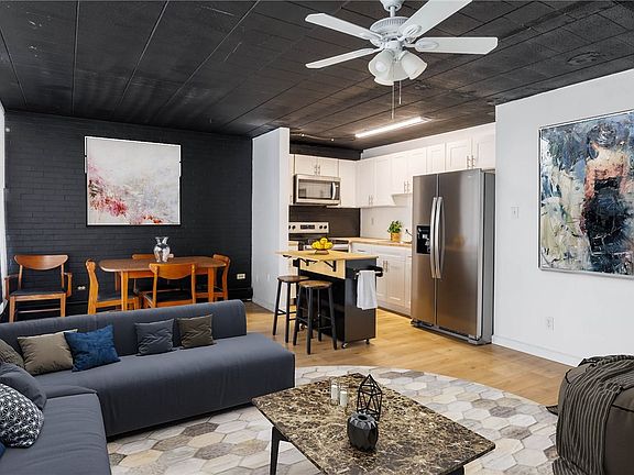 This modern, fully updated, move-in-ready condo features first-floor living with 1 bedroom and 1 bathroom. It boasts a wall of windows that leads to a lovely patio. The kitchen is equipped with new white shaker cabinets, butcher block countertops, and brand-new appliances. Stunning white oak laminate floors flow throughout the entire space, and the freshly updated bathroom adds to the condo's charm. Conveniently located in Castle Shannon, it's just minutes away from Lebanon Shops and close to grocery stores, restaurants, and more. The HOA covers heat, water, and maintenance of common areas, ensuring a worry-free living experience.