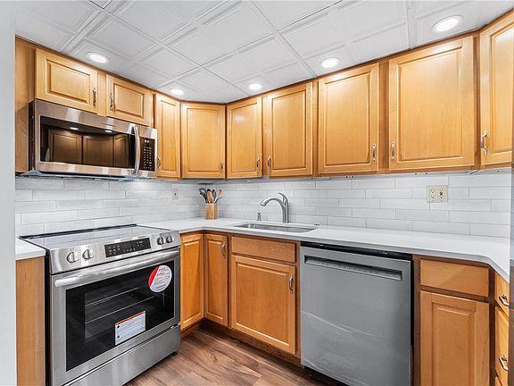 Seize your chance to own this superbly updated 2 bd/2 ba condo in The Grenadier!! This private end-unit is largest unit in condo & comes w/ deeded integral garage space! Move-in ready w/ new kitchen appl/fixtures, beautiful Quartz counter, undercabinet lighting, updated lighting, new LVP flooring in kitchen & baths. Freshly painted & meticulously maintained. Ample closet space throughout & a wall of windows w/ a vast balcony overlooking tree-lined street. This home boasts loads of natural light & is in PRIME location close to Mt. Lebanon Shops, dining, schools, & the T. Building’s equipped w/ elevator for easy access to coin/card-op laundry, conf. room, garage, & storage lockers. Enjoy LOW MAINTENANCE living in secure building. Base HOA fee of $475 covers gas, water, sewer, trash, landscape, snow removal, & bldg maintenance. HOA Special Assmt of $155 est. completion summer 2024. No pets/rentals allowed. This is rare opportunity to own a beautiful condo in a highly desirable location!