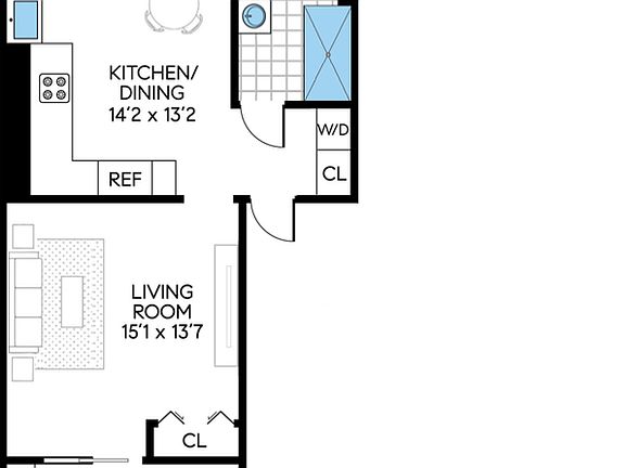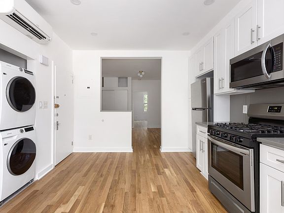 Step into this beautiful newly renovated, 1 bedroom 1 bathroom with sun filled private patio in the heart of Williamsburg. With Washer/Dryer in unit, Central AC and Dishwasher. Just moments from the L train. This floor through unit offers an elegant blend of stylish modern finishes and charming original detail, the pass through from the dine-in kitchen to the spacious living area has been opened up to allow sunlight to cascade throughout both spaces. It's the perfect combination of flow and separation between the rooms. Off of the kitchen you have a large private patio. The kitchen features brand new stainless steel appliances including a full size range and refrigerator, built in micro-wave and a dishwasher. Perfect for entertaining with ample space for a large dining table. The living room feels cozy yet very spacious, with more than enough room for a sectional couch and a home office space. The bedroom is located behind the living room, conveniently tucked away for privacy. The primary bedroom is enormous, easily fitting a king sized bed and additional furniture. When you arrive at this secluded and tranquil block of Humboldt, the hustle and bustle of the city seems to fall away. Yet, you're never more than minutes away from the best Williamsburg and Bushwick amenities. Catch a show at Brooklyn Steel or Warsaw, and explore cafes, cocktail lounges and top-rated restaurants on the nearby streets. You'll find lovely parks in every direction, including Cooper Park and beloved McCarren Park's popular pool, tennis courts, fitness center, track and year-round greenmarket. The L train stops just a few short blocks away, and the G train is also close by. Excellent bus service, CitiBikes and the BQE round out the abundant transportation options surrounding this brand-new Williamsburg dream apartment!