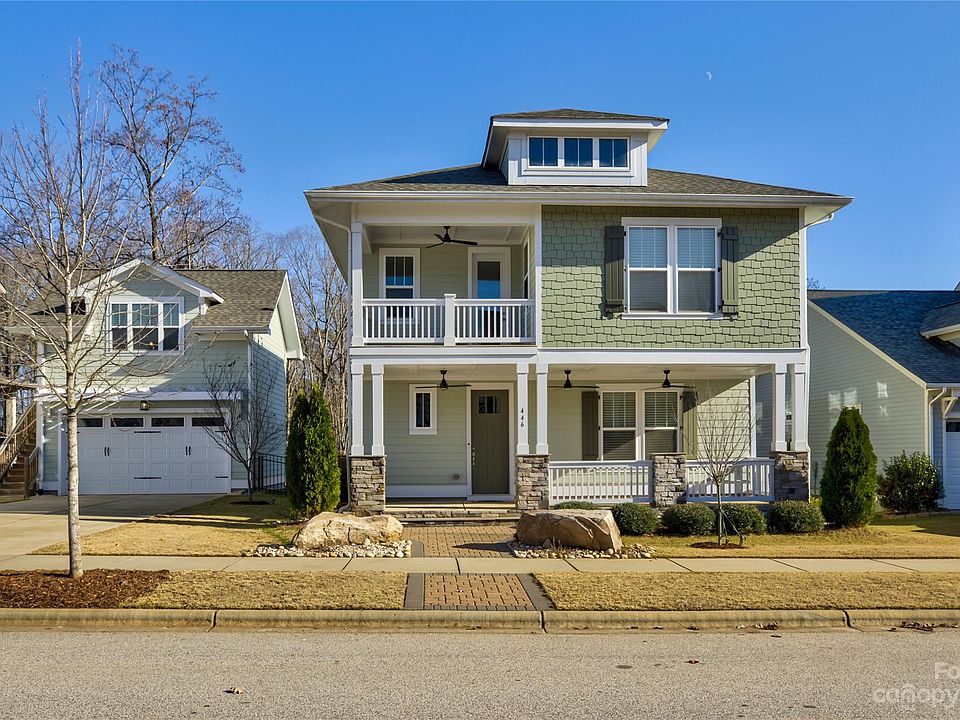 Fabulous 4/3 craftsman-style home backing up the natural area surrounding the Catawba River! The second living quarters over the 2-car garage makes a fantastic home office, studio, man cave or work-out area! Enjoy not one, but TWO covered porches to enjoy the outdoors and friendly neighbors! This home is generously appointed with upgrades and updates and is situated on a wide homesite with lovely, natural views including amazing sunsets. Just steps from the community pool, playground, BMX track and the Riverwalk trail!