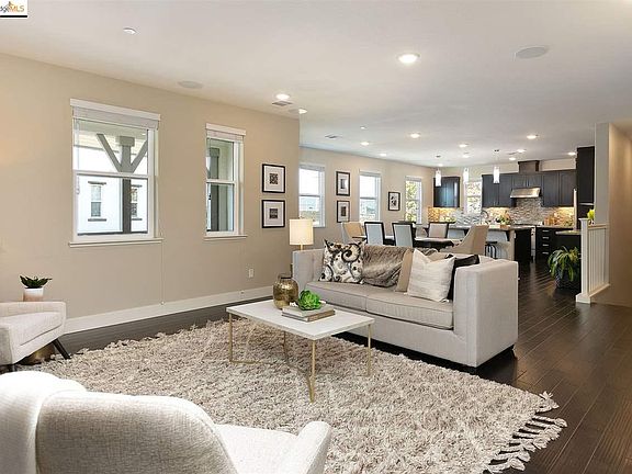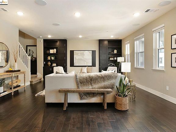 4 year old townhouse style condo across the street from Alameda Landing's shopping and restaurants. Water front developments, across the street, is underway; with water front promenade, water taxi, boat & Kayak launch, Bay Trail, and retails. Many builder's upgrades: built-in entertainment wall / cabinetry complete with state of art built-in speakers, recess lighting and wood floors. Huge & tall open spaces with Downtown Oakland, Jack London and the estuary view. Amazing modern kitchen with custom Italian appliances and walk in pantry. Quick Ferry ride to SF downtown or take the complimentary shuttle to 12th St. BART. 4th bedroom is being used as a rumpus or teen room, but can be converted easily.