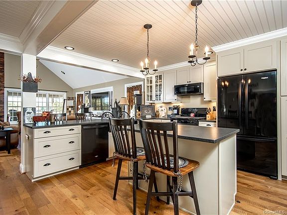 This is Lake Living at its finest! Custom built, builders own 3 bedroom, 3 1/2 bath Cape with direct water front and private dock situated on a generous 1.4 acres. This gorgeous home features a custom-made fully applianced kitchen, full dining room, and vaulted ceilings. Exquisite views from every window! Enjoy your morning coffee on your private deck off of the first floor Master Suite which also offers a private bathroom with a spectacular oversized tiled showered. A fully finished lower level with walk out is set up as a potential in law or simply a great space to entertain. This rare waterfront home invites you outside to an amazing beach bar for entertaining on those beautiful summer nights. A detached 2 bay garage and separate oversized outbuilding with loft offers endless storage or space for the hobby enthusiast. This immaculate home is an extraordinary find; don't miss your opportunity to make this home yours!