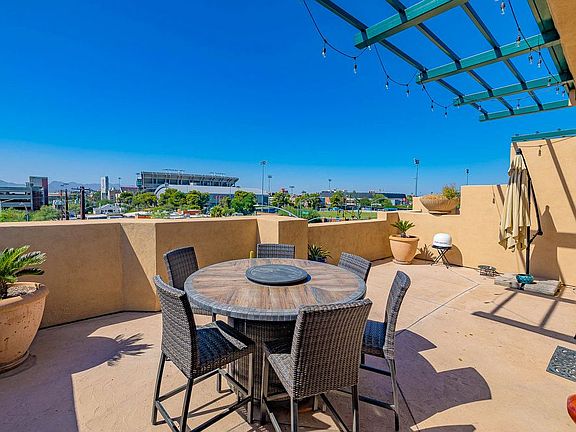 Beautifully updated 2 bedroom 1 1/2 bath 3rd story condo in Sam Hughes neighborhood and close to U of A and Banner Hospital. Elevator access to third floor. Amazing sunset views from large balcony! Travertine tile throughout with carpet in bedroom. Gas fireplace in the living room. Stainless appliances in the kitchen and fully stocked. Master has a king bed with walk in closet. Step in shower. Gym on the second floor. SEASONAL RATES: DEC - APR $3,495 / MAY - NOV $2,695