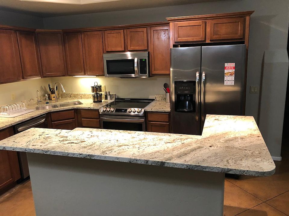Spectacular newly remodeled 2BR/2Bath 1060 sq/ft condo across the street from UofA (Sam Hughes Place SE corner 6th & Campbell); first floor next to fountain and close to retail, dining and Urgent Care. Is furnished (or not) and ready to move in for $1800/mo (includes water, gas, trash, sewer, 2 covered parking spaces); will accommodate 2-4 tenants. * New everything: granite countertops kitchen and baths; sinks; appliances; high output reverse osmosis water filter; paint. * Additonal: gas fireplace; washer and dryer; large walk in closet; 2 wall mount TV's; ROKU; bike lockers. One year lease with one month security deposit required. No smoking or pets.