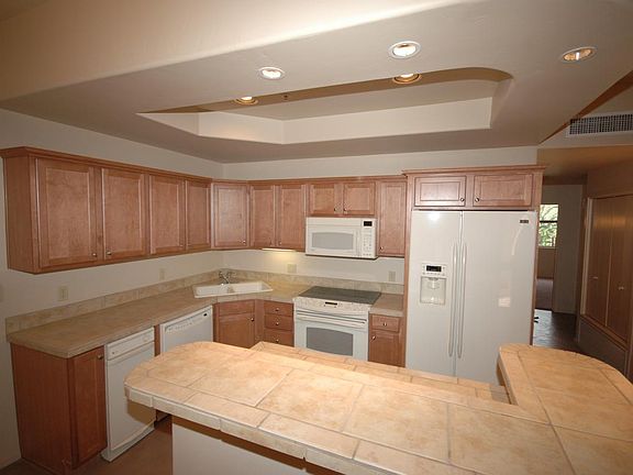 Great Location at UofA! Right across the street from the U of A at Campbell Avenue and 6th Street. High end appliances, dual sinks in both bathrooms, tile countertops, stained concrete floors throughout. Central air conditioning and ceiling fans, washer and dryer in unit, window coverings. Private patio off master bedroom. Ground floor unit. Two covered parking spaces. Water and trash included. No pets. No smoking. Please do not disturb current tenant.