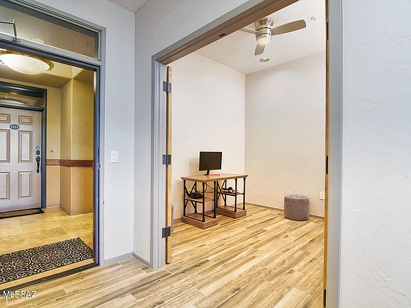 Beautiful condo located at the southeast corner of Campbell Avenue and 6th Street, you are conveniently close to the University of Arizona campus and the center of Tucson. This east-facing condo offers 1166 square feet of space, with 3 bedrooms (a rare find in the main building) and 2 baths. The large primary suite includes a bath with a walk-in tile shower and dual sinks. The other 2 bedrooms share a common bath with a tub/shower. All rooms have closets, including a large extended closet in the primary bedroom. The living/dining area is spacious and flexible, with balcony access. The kitchen features quartz surface countertops, a tile backsplash, and stainless steel appliances installed in 2019. Condo was remodeled in 2020 tile flooring throughout, new laundry, new water heater, new toilets, new window coverings all added when purchased last in 2020. HOA fees cover on-site security, security key fob access, an exercise gym with workout equipment on the 2nd floor, water, trash/recycling, and upkeep of common areas. Unit also has two assigned covered parking spaces. Easy walk to UA campus to enjoy the college experience.