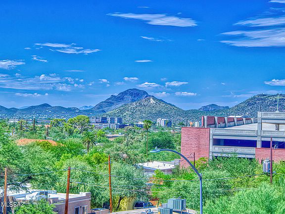 Perfect U of A location! PENTHOUSE UNIT IN SAM HUGHES PLACE AT THE CORNER WITH VIEWS OF ARIZONA STADIUM, ''A'' MOUNTAIN, DOWNTOWN & MOUNTAIN RANGES! UNIQUE CONDO W/ TWO MASTER SUITES, BOTH W/ WALK-IN CLOSETS, GRANITE VANITIES W/ DOUBLE SINKS, JACUZZI TUBS & SEPARATE SHOWERS. GORGEOUS KITCHEN W/ MAPLE CABINETS, GRANITE TOPS PLUS BREAKFAST & WET BAR. A BLEND OF CARPET AND TRAVERTINE TILE FLOORS, MANY CEILING FANS, SECURITY ENTRY & PRIVATE FITNESS CENTER. ONE BEDROOM HAS VIEWS OF UA & DOWNTOWN. OTHER BDRM HAS VIEWS OF RINCON MOUNTAINS. LIVING RM & ONE BDRM LEAD TO INCREDIBLE 275 SQ FT PATIO. A PERFECT LOCATION FOR SOMEONE WHO WANTS TO BE RIGHT NEXT TO THE UNIVERSITY! HOA FEE COVERS WATER, GARBAGE PICK-UP, INSURANCE, MAINTENANCE OF BUILDINGS & GROUNDS, ROOF, SECURITY, TERMITE & PEST CONTROL.