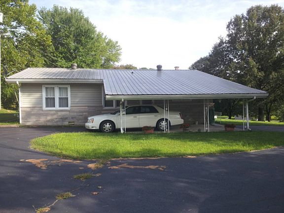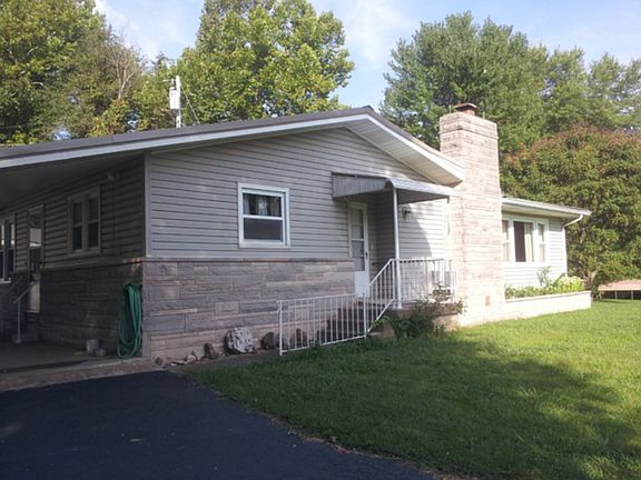 Well maintained home offers large living room with fireplace, beautifully located along State 37 overlooking Lucas Golf Course. Nice big yard, blacktop drive, 3 bay detached concrete poured walled garage has electric, phone jack, wood stove. Property near amenities, wooded and open land. Four separate sites with all utilities with 3 already rented.