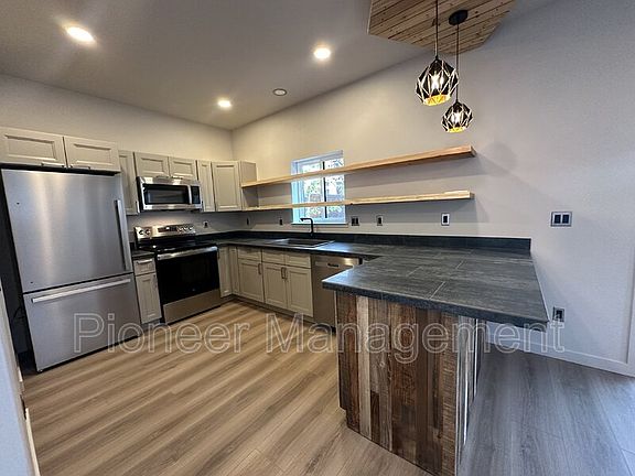 **Move-in Special: $500 Credit Towards First Full Months Rent (move in before 4-30-25) Experience comfortable living in this spacious 1,269 sq. ft. two-bedroom home at 446 NE Burnside Ave. Unit 2. This thoughtfully designed residence features two full bathrooms and a half bath, blending modern style with practical functionality. The open living area is bathed in natural light, while the bedrooms offer a peaceful retreat with ceiling fans for added comfort. The kitchen boasts sleek stainless steel appliances, a pantry, and ample storage spaceyou'll be pleasantly surprised by how much storage this home offers! You'll also enjoy heating, air conditioning, in-unit laundry, and all included appliances. As the middle unit of a three-unit property, this home has its own generously sized patio space, perfect for outdoor entertaining. Situated in a vibrant neighborhood, you'll be just minutes from Bend's best dining, shopping, and outdoor activities. Pets are welcome! This is a pet-friendly property. Please note, however, that the yard is not fully fenced or secured, so pets need to be on a leash while outdoors. Small to medium-sized dogs are recommended. Window coverings and washer & dryer appliances are on order and will be installed shortly. Parking for this unit is Street Parking. Internet service is available through CenturyLink. Tenants are responsible for setting up, managing, and paying for their own service.