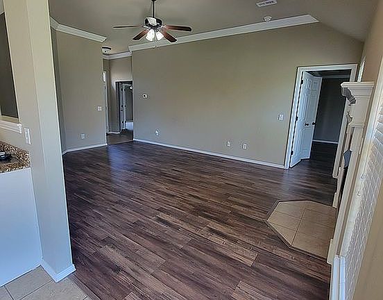 Absolutely adorable!! 4 bed 2 bath. Open concept living features split bedroom floor plan, granite counters, high ceilings, crown molding, gas log fire place. Laminate flooring in living space and master and quality carpet in guest bedrooms. Refinished kitchen cabinets. Fully fenced backyard and nice patio space for entertaining! Seller prefers you to be pre-qualified