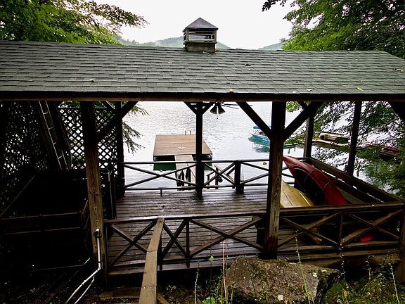 Huge 3 level home with room for everyone!!! Home is being sold FURNISHED Main level has large open living room and dining room with vaulted ceilings, master bedroom & bath, additional bedroom & bath, spacious kitchen with attached garage. Next level has another master bedroom & bathroom additional bedroom and large den/ rec room with fireplace. Lower level has HUGE bonus room that owners use for bunk room , full bathroom, den with fireplace and storage area. Lots of covered deck space and tram to lake. Covered picnic storage area at lake for added outdoor living space.