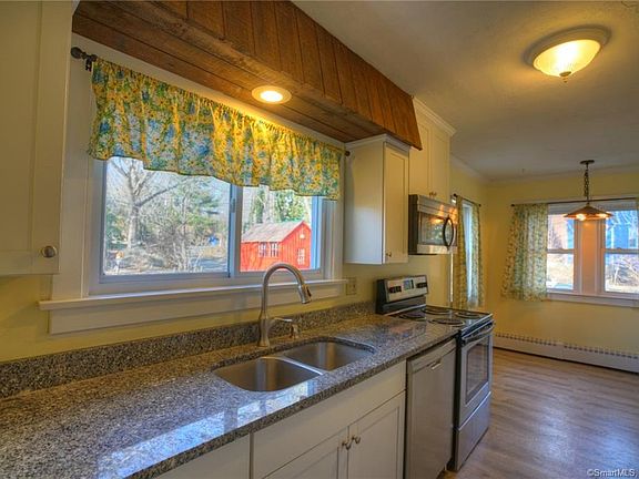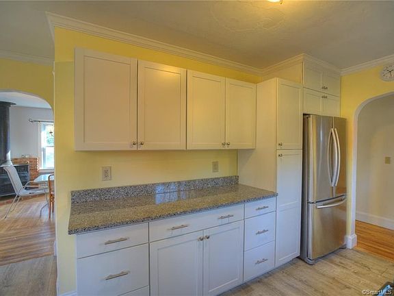 This water community rear lot Colonial home has 3 bedrooms and 2 full baths and sits on 1.16+ acres of land. The main floor has hardwood flooring and arch doorways throughout. Eat-in kitchen comes with SS appliances, double sink, and plenty of granite counter space, and flows into a formal dining room where one can enjoy cozy meals around the woodstove. Living room is perfect for game nights with the large space it will be a joy to design the perfect room and leads to a backyard deck. Convenient, 2 main floor bedrooms and upper level master bedroom has a full bath and balcony that overlooks the backyard. There is a full basement partially finished, a detached 2 car garage, and a barn that can serve many purposes. A quick drive to Hidden Lake Walking Trails, Town's End Preserve and Trail, and Beebe Pond Park, or enjoy a walk to the water!