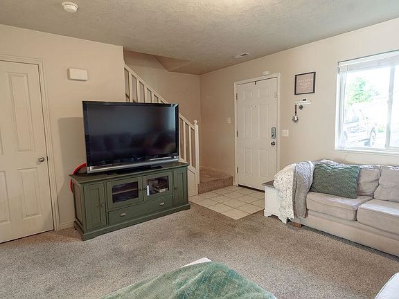 This cute townhome is ready for new owners! The sellers have updated the cabinet paint and just had the carpets cleaned. There is a kitchen, living room, half bath and laundry on the main floor. Outside the back door is the patio with space for garden pots and a grill and a shared yard. Upstairs there are two large bedrooms and a full bathroom. The HOA covers the water, sewer, garbage and maintains the yard and walkways. Outside there is a covered garage and playgrounds in the complex. It's a perfect starter home or investment property!